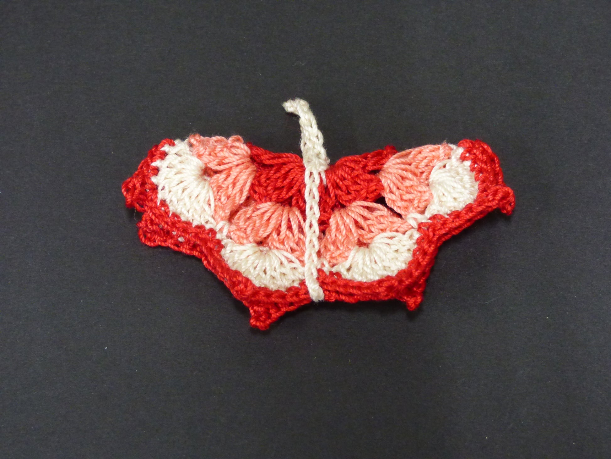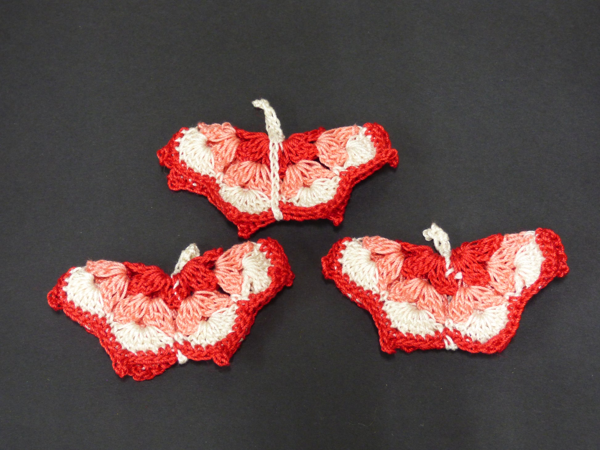 Hand Crocheted Butterfly Applique 3 Piece Set White, Red, and Pink