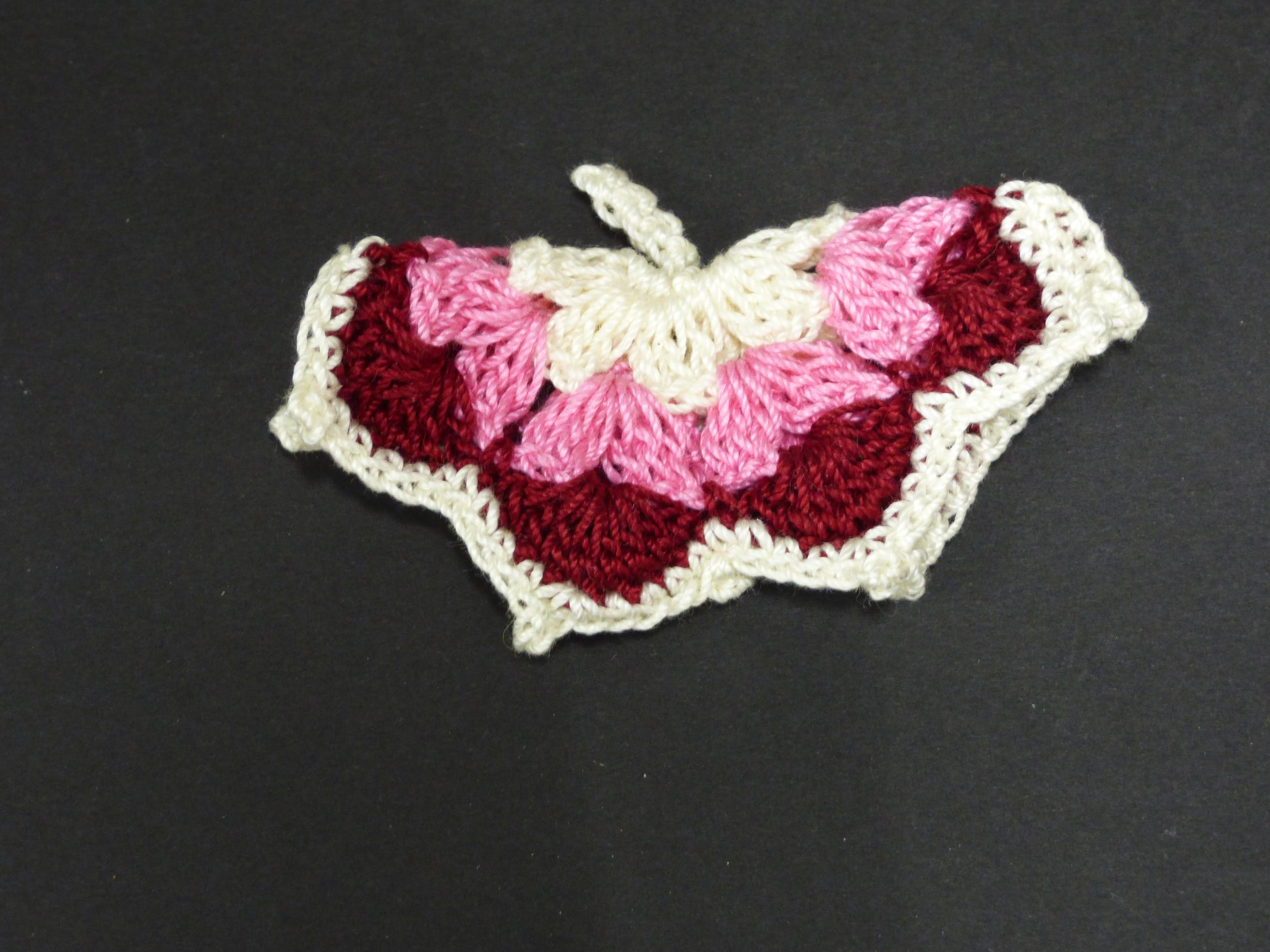 Hand Crocheted Butterfly Applique 3 Piece Set Pink, Burgundy, and Cream