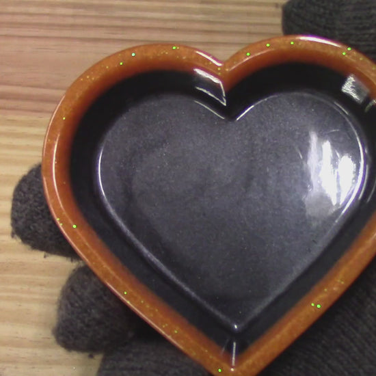 Handmade Resin Silver Black with Orange Heart Dish Four Piece Set