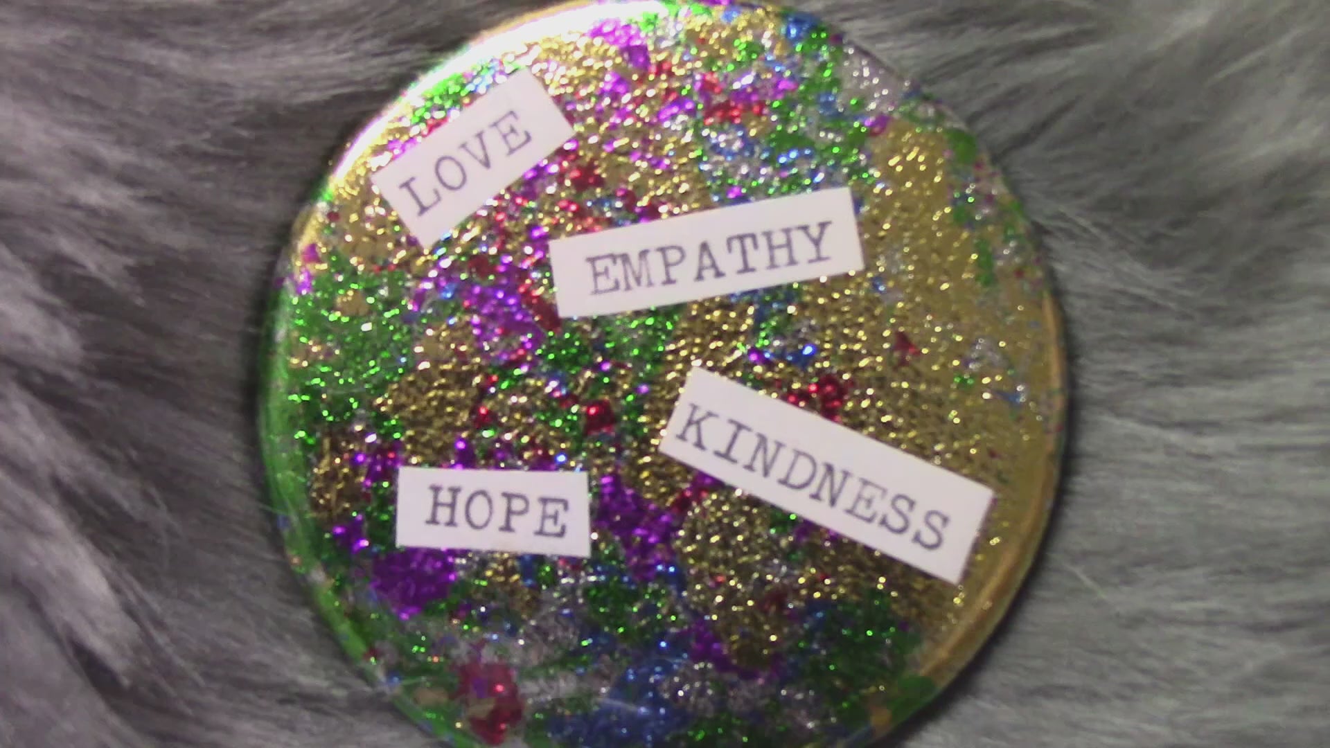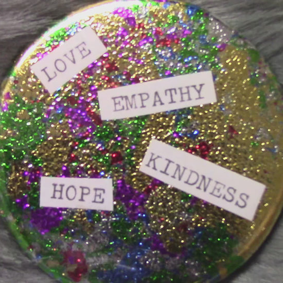 Love Empathy Kindness Hope Metal Flake Mixed Media 2.25" Button