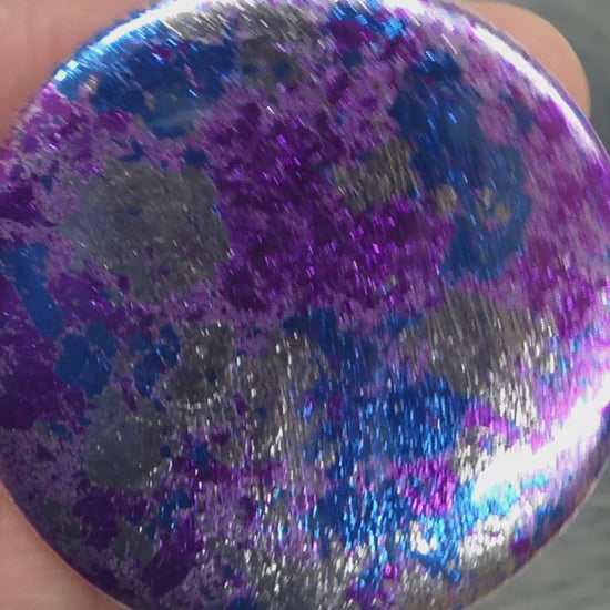 Purple, Blue, and Silver Metal Leaf Pinback Button