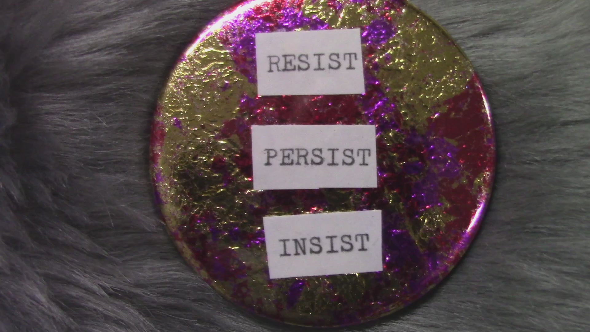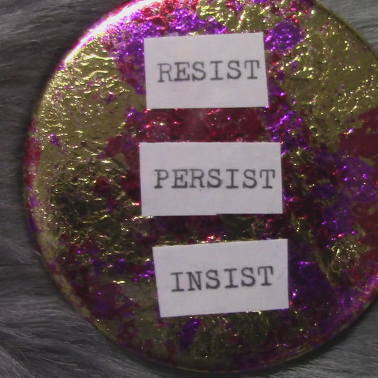 Resist Persist Insist Metal Flake Mixed Media 2.25" Button