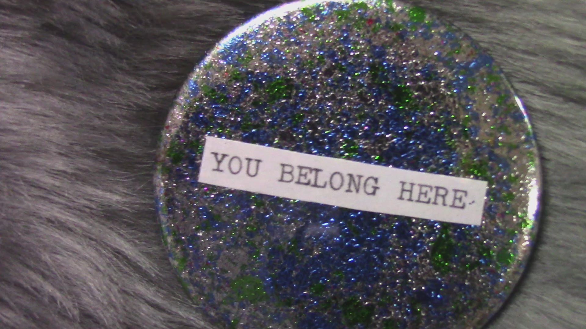 You Belong Here Metal Flake Mixed Media 2.25" Button